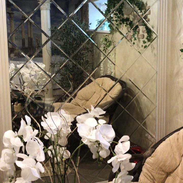 Использована зеркальная квадратная плитка с фацетом.